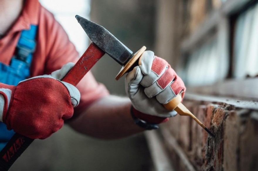 Skuwanie tynku za pomocą młotka i przecinaka